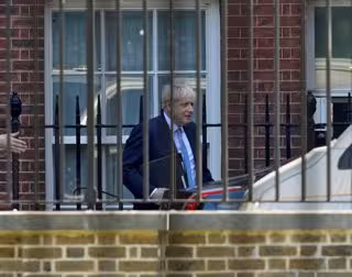 Boris Johnson a la salida de la primera reunión con su Gobierno en el número 10 de Downing Street - Aaron Chown/PA Wire/dpa