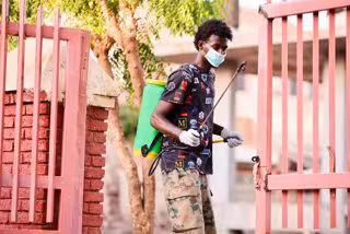 Un hombre con mascarilla desinfectando una mezquita en Sudán - faiz Abu bakr