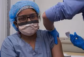 Una enfermera es vacunada de coronavirus en Estados Unidos. - Allison Dinner/ZUMA Wire/dpa