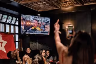 Seguidores del expresidente Luiz Inácio Lula da Silva siguen la primera vuelta de las elecciones de Brasil en un pub de Dublín, Irlanda. - NATALIA CAMPOS / ZUMA PRESS / CONTACTOPHOTO