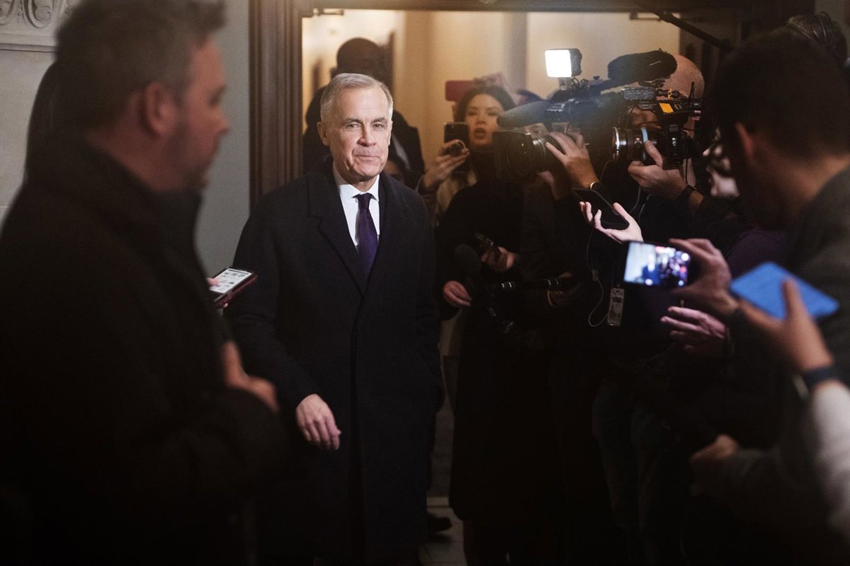 El primer ministro, Mark Carney, ofrece declaraciones a la prensa tras llegar a su oficina en Ottawa. - Europa Press/Contacto/Adrian Wyld
