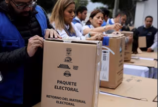 Un grupo de vocales abriendo los paquetes electorales enviados por el CNE para las elecciones en Ecuador. - TWITTER CNE
