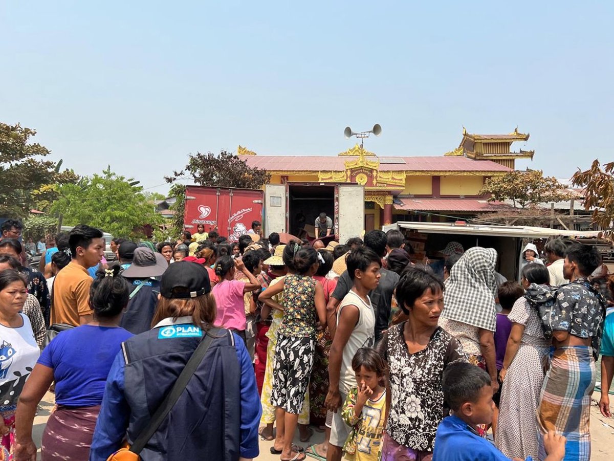 Archivo - Imagen de archivo de un grupo de birmanos esperando para recibir ayuda tras el terremoto de marzo. - PLAN INTERNACIONAL - Archivo