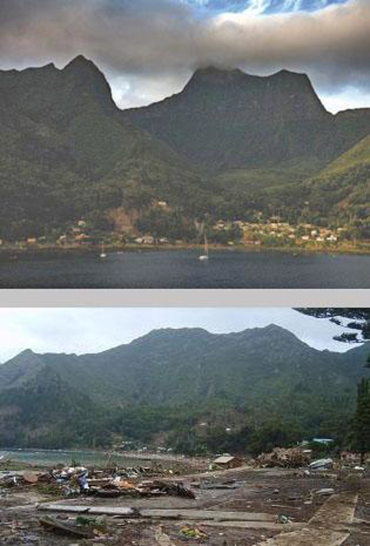 Pero el sábado pasado, una gigantesca ola de unos 20 metros ha dejado sin nada a los habitantes de Robinson Crusoe. El tsunami ha dejado reducido a escombros el pueblecito de San Juan Bautista, principal población de la isla, donde la mayoría de las viviendas, sino todas, eran de madera. Ocho personas han muerto, entre ellas un niño de sólo 8 años, y hay varios desaparecidos.