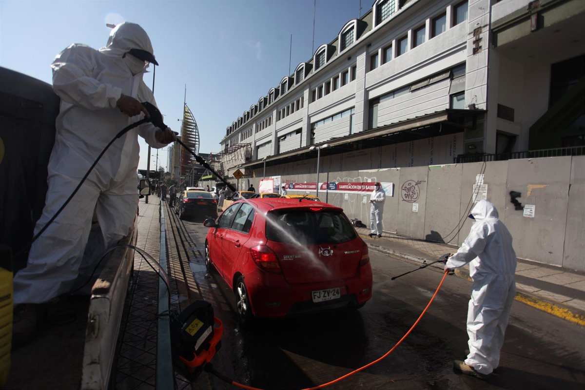 Estacion de desinfección en la comuna de Estacion Central de Santiago - AGENCIA UNO/AILEN DIAZ