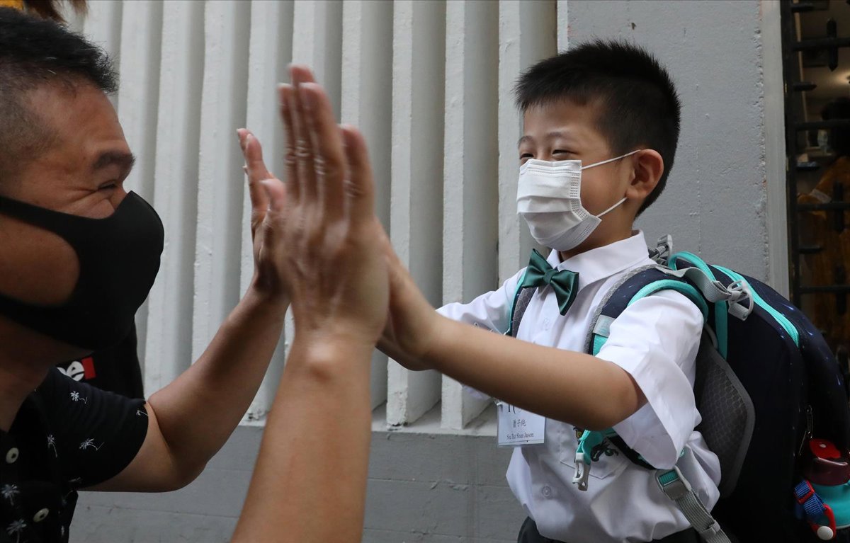 Un niño se despide de su padre antes de entrar a su escuela en Hong Kong. - NORA TAM / ZUMA PRESS / CONTACTOPHOTO