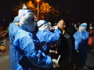 Una persona se somete a una prueba rápida de coronavirus en una de las instalaciones móviles habilitadas en uno de los distritos de Tianjin, en el norte de China. - ZHAO ZISHUO / XINHUA NEWS / CONTACTOPHOTO