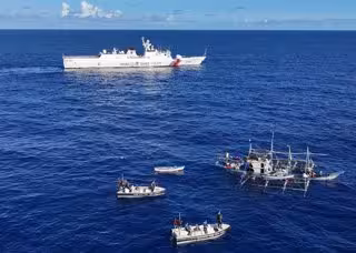 Imagen de archivo de un buque de la Guardia Costera de China junto a barcos filipinos en el mar de China Meridional. - Europa Press/Contacto/Deng Hua