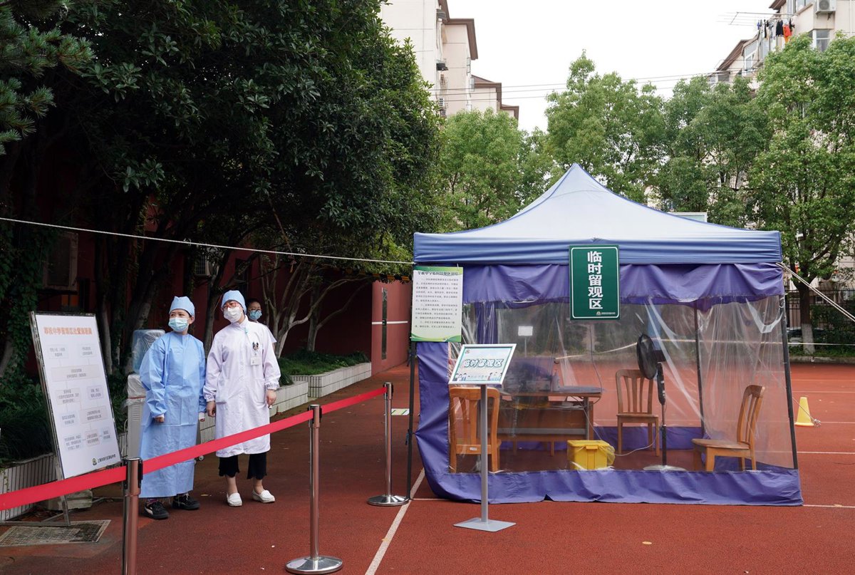 Puesto de control a la entrada de un colegio de Shanghái. - LIU YING / XINHUA NEWS / CONTACTOPHOTO