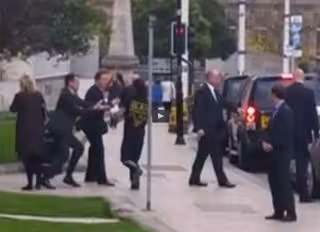 El choque fortuito de un hombre contra el primer ministro de Reino Unido, David Cameron, en plena calle ha obligado a actuar al equipo de seguridad del jefe de Gobierno, que trató de protegerle ante la incertidumbre de no saber lo que estaba pasando.