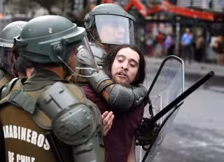 Un manifestante es reducido por agentes de los Carabineros en las protestas acontecidas en Santiago, Chile. - REUTERS / GORAN TOMASEVIC