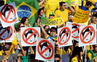 Los llamamientos al juicio político --exhibidos incluso en banderas gigantes durante las manifestaciones-- han unido a una población que teme la peor desaceleración económica desde hace más de dos décadas. Con el desempleo y la inflación al alza, las marchas del domingo se llenaron de quejas por las medidas de austeridad.