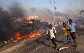 La tremenda potencia de la explosión del camión bomba prácticamente devastó los alrededores de la intersección K5, donde se encuentran desde restaurantes hasta sedes del Gobierno somalí.