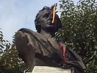 La estatua de Cristóbal Colón que hay cerca del ayuntamiento de la ciudad estadounidense de Detroit ha aparecido este lunes con un hacha clavada en su cabeza y el rostro salpicado de pintura roja.