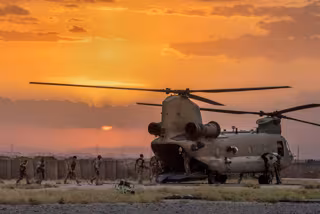 Archivo - Soldados del Ejército de EEUU abordan un helicóptero Chinook CH-47 mientras parten de un puesto de combate remoto conocido como RLZ, cerca de la frontera turca en el noreste de Siria. - JOHN MOORE - Archivo