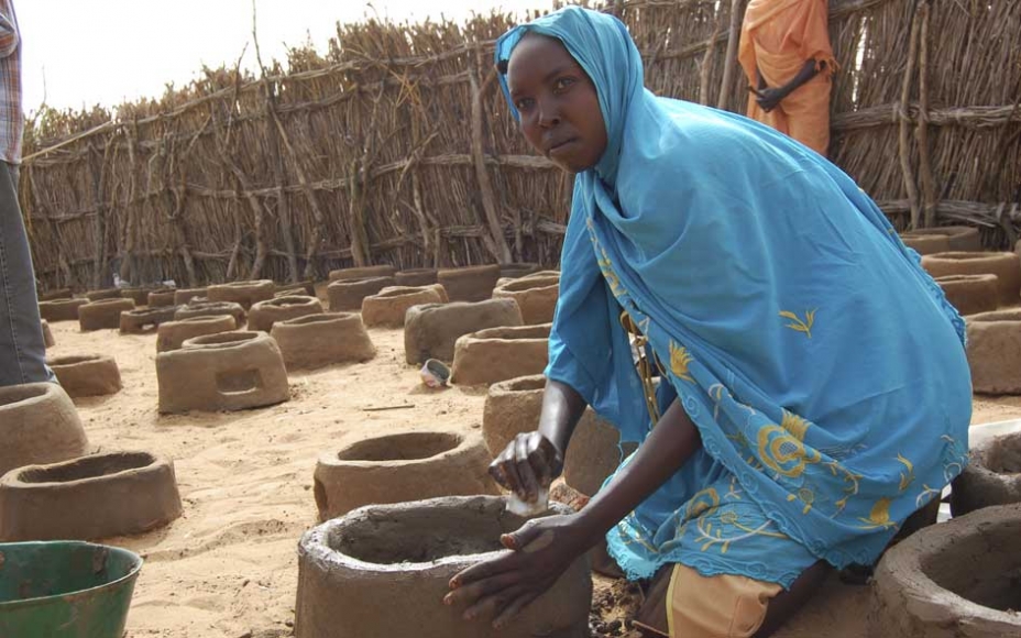 Hanan recibe formación para fabricar cocinas eficientes en el uso de combustible hechas parcialmente de barro y plantas y para hacer briquetas para alimentar el fuego. Mediante ello, puede incrementar sus propios ingresos al tiempo que ayuda a mejorar tanto la seguridad de las personas como el medioambiente.