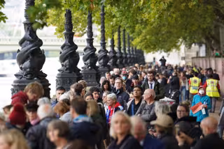 La cola para que los ciudadanos puedan despedirse en el Palacio de Westminster de su difunta reina, Isabel II, rondaba ya este mediodía los 7 kilómetros de distancia, después de que este jueves por la mañana se hayan unido miles de personas más a la fila.