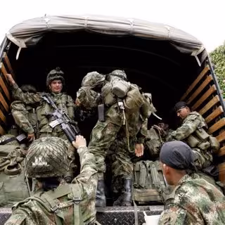 Las Fuerzas Armadas de Colombia enfrentan a la guerrilla izquierdista en un conflicto interno de más de medio siglo que ha dejado más de 200.000 muertos y millones de desplazados, así como a bandas criminales conformadas por antiguos paramilitares de ultraderecha dedicadas al narcotráfico.