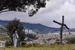 Una persona con traje de protección por el coronavirus en el Crematorio de Serafín de Bogotá - 2020 GETTY IMAGES / GUILLERMO LEGARIA - Archivo