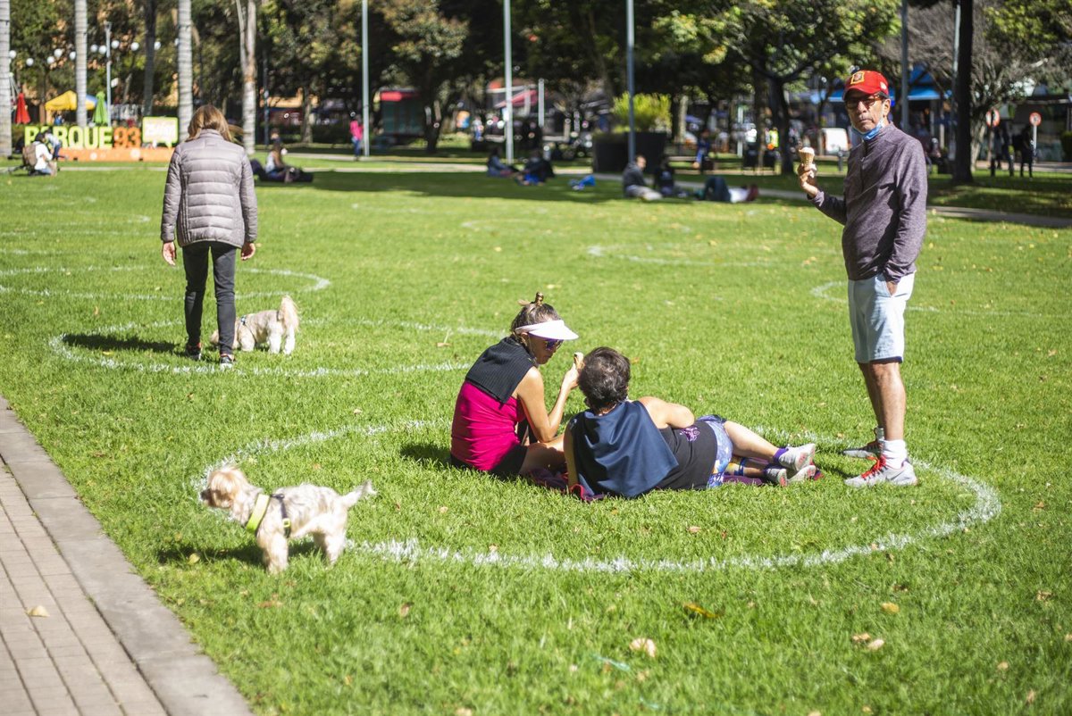 Un grupo de personas mantienen las distancias de seguridad marcadas en un parque de Bogotá, Colombia. - DANIEL GARZON HERAZO / ZUMA PRESS / CONTACTOPHOTO