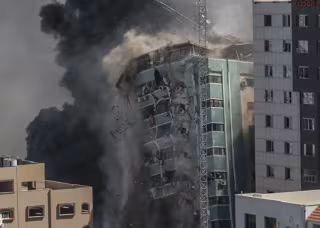Archivo - Destrucción de la Torre Al Yalá, sede de Al Yazira y de la agencia de noticias estadounidense AP, durante la ofensiva israelí en Gaza de mayo de 2021 - Mohammed Talatene/dpa - Archivo