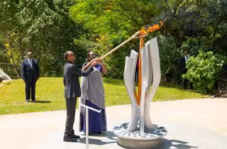 Archivo - El presidente de Ruanda, Paul Kagame, y la primera dama, Jeannette Kagame, encienden una llama conmemorativa en el Memorial del Genocidio de Kigali, el lugar de descanso final de más de 250.000 víctimas del genocidio de 1994 contra los tutsis, - Europa Press/Contacto/Kigali Genocide Memorial