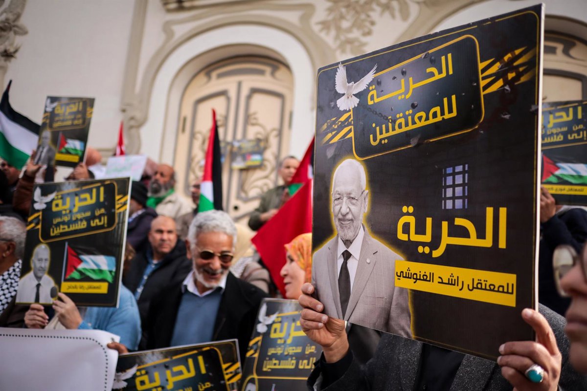 Archivo - Protesta en Túnez para pedir la liberación de opositores tunecinos, entre ellos Rachid Ghanuchi, en la pancarta - Europa Press/Contacto/Hasan Mrad - Archivo