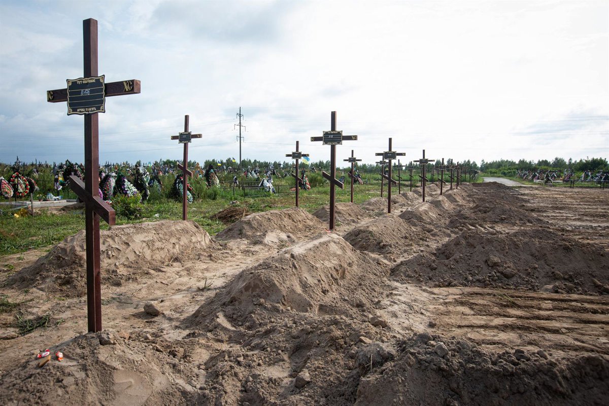 Archivo - Imagen de archivo de tumbas en un cementerio de Bucha. - Oleksii Chumachenko / Zuma Press / ContactoPhoto