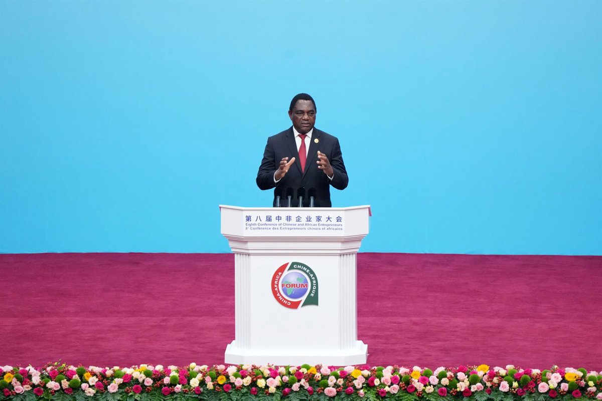 Archivo - El presidente de Zambia, Hakainde Hichilema, da un discurso ante la Conferencia de Emprendedores Chinos y Africanos celebrada en septiembre de 2024 en la capital de China, Pekín (archivo) - Europa Press/Contacto/Chen Yehua - Archivo