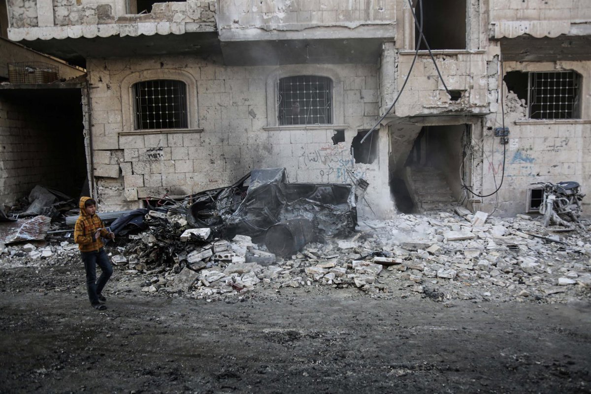 Un niño camina frente a un edifico bombardeado en la provincia de Idlib, en el noroeste de Siria - Anas Alkharboutli/dpa - Archivo