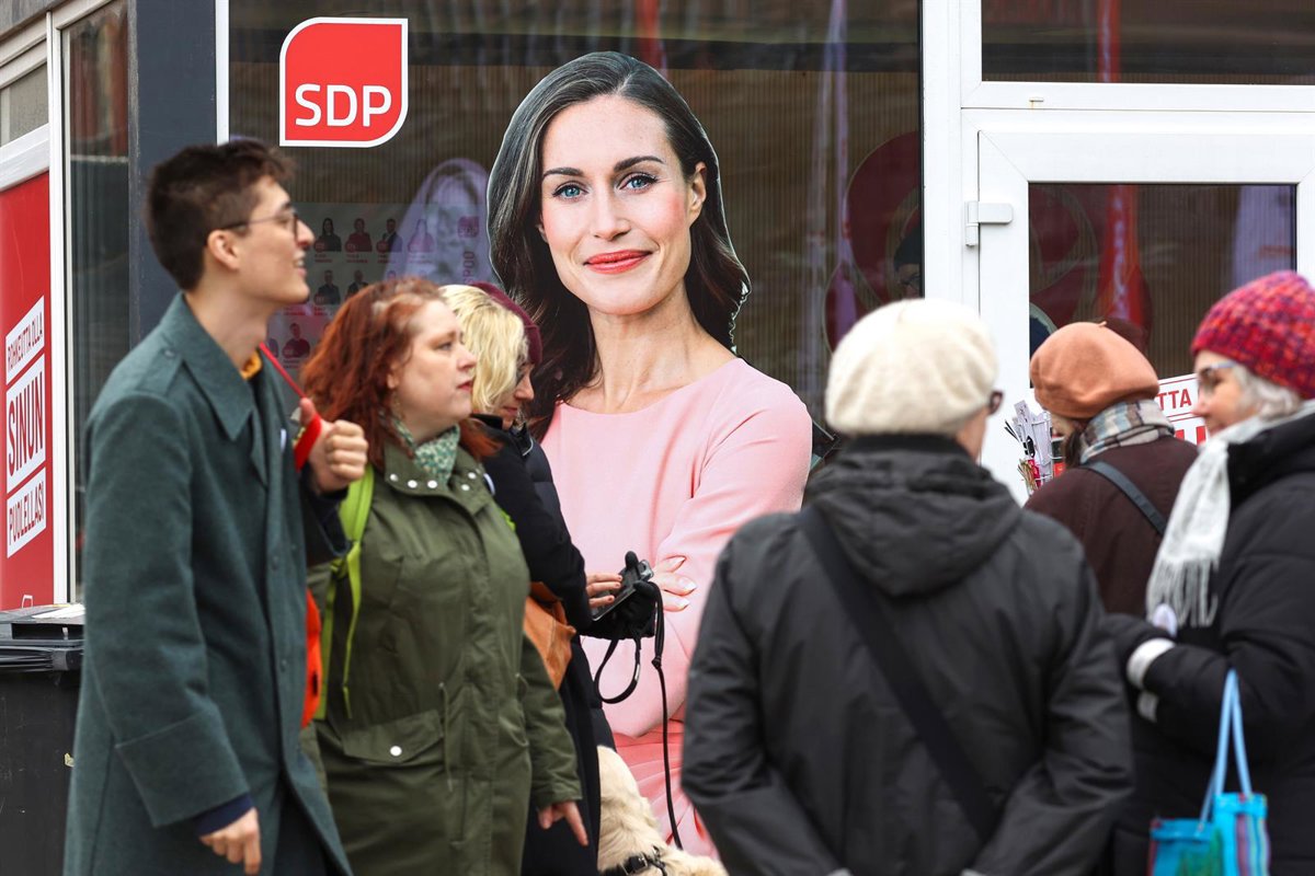 Cartel electoral con la imagen de Sanna Marin, primera ministra de Finlandia - Europa Press/Contacto/Marina Takimoto