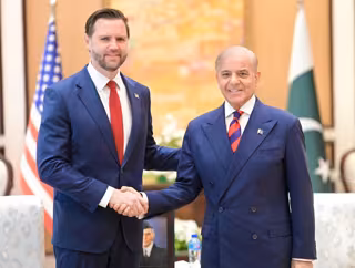 El vicepresidente de EEUU, JD Vance, con el primer ministro de Pakistán, Shebhaz Sharif (D) en las conversaciones de paz con Irán en Islamabad, a 11 de abril de 2026. - Europa Press/Contacto/Wang Shen