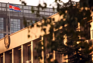 Archivo - Bandera de Corea del Norte en la Embajada norcoreana en Pekín, China - STEPHEN SHAVER / ZUMA PRESS / CONTACTOPHOTO