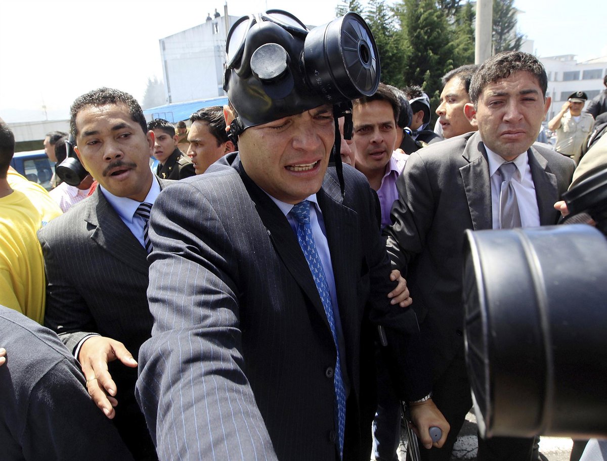 Correa tuvo que abandonar el Regimiento número 1 de la Policía, donde había acudido para dialogar con los agentes, entre fuertes medidas de seguridad.