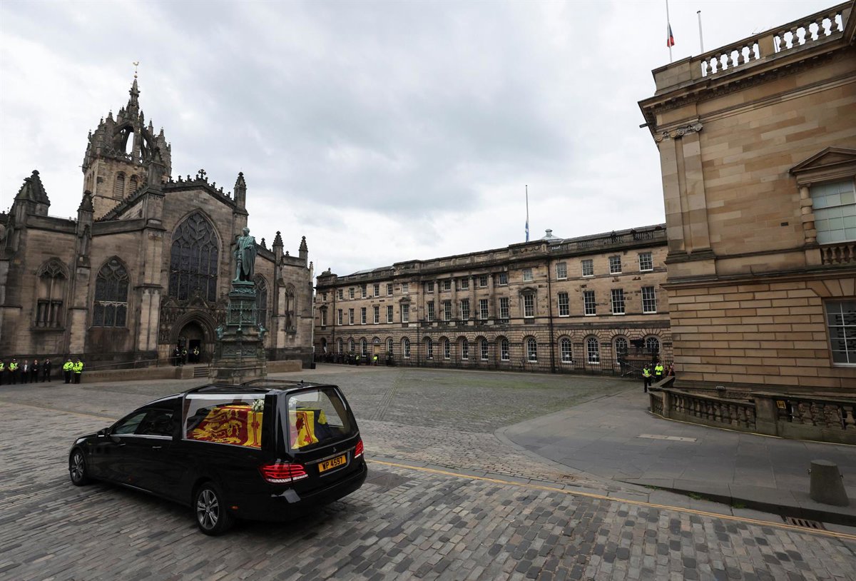 Miles de curiosos se agolpan en las calles de la capital escocesa para seguir el cortejo, con el que continúan los actos protocolarios por el fallecimiento de Isabel II, que murió el jueves en su residencia de Balmoral.