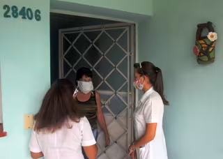 Estudiantes de medicina cubanos preguntan a una mujer en La Habana sobre posibles síntomas de covid-19 - GUILLERMO NOVA / ZUMA PRESS / CONTACTOPHOTO