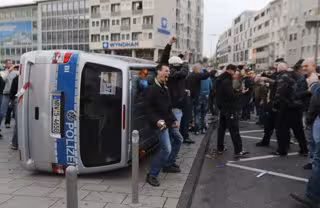 Los agentes emplearon cañones de agua e hicieron retroceder a los violentos, que se reagruparon en la plaza de la estación y volcaron un furgón policial. Un grupo de 'cabezas rapadas' con embozo cargó entonces contra la prensa al grito de "Deutsche Presse! Halt die fresse", "¡Prensa alemana, cierra la boca!".