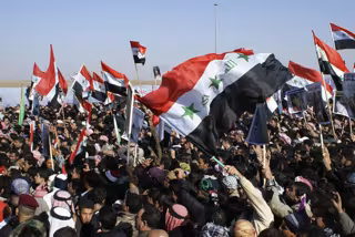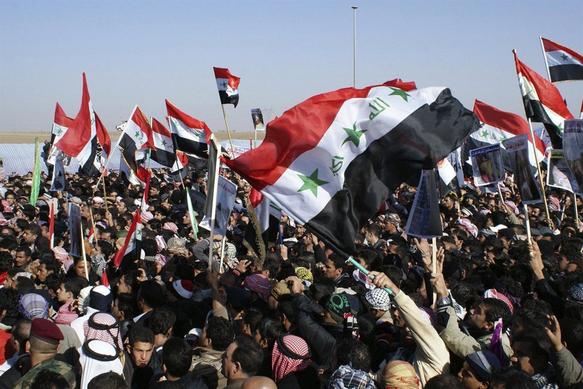 Cerca de 60.000 personas han bloqueado la principal avenida de la ciudad de Faluya, a 50 kilómetros al este de la capital, Bagdad, y han quemado una bandera iraní, mientras gritaban lemas como "Fuera Irán. Bagdad sigue libre" y "Al Maliki, cobarde, no sigas los consejos de Irán".