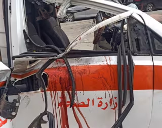 Ambulancia bombardeada en la Franja de Gaza - MINISTERIO DE SANIDAD GAZA