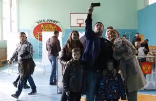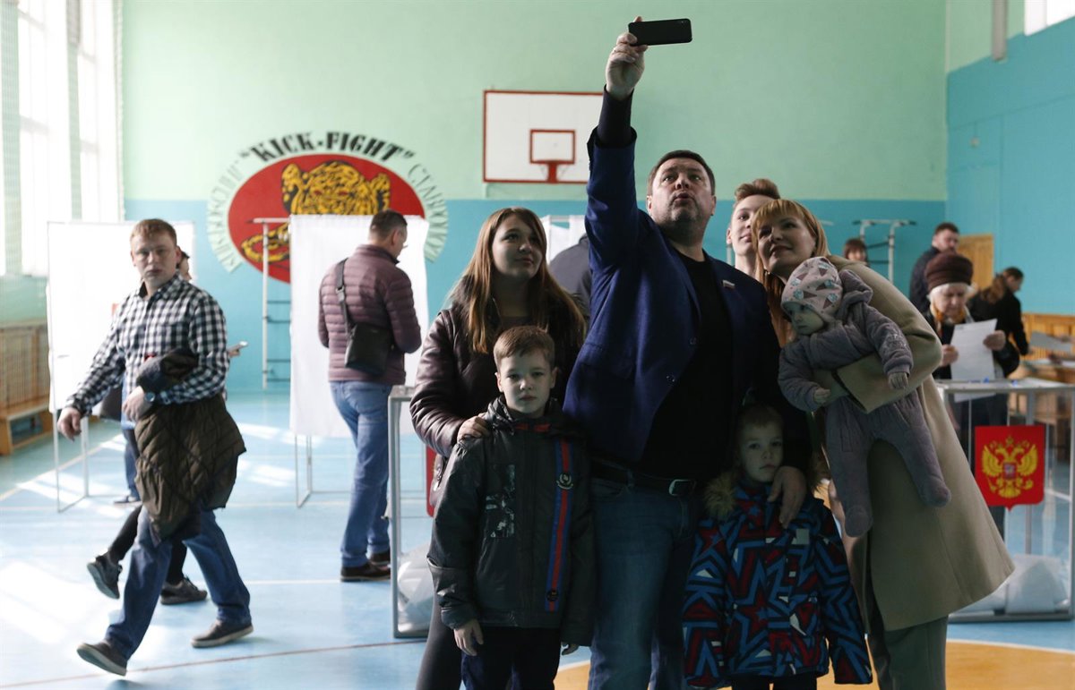 En Simferopol, en la Crimea ucraniana ocupada por Rusia, una pareja con hijos se hizo una foto votando y al ser interrogada al respecto la mujer contestó que trabajaba en una escuela infantil. "Lo necesito para trabajar", ha explicado.