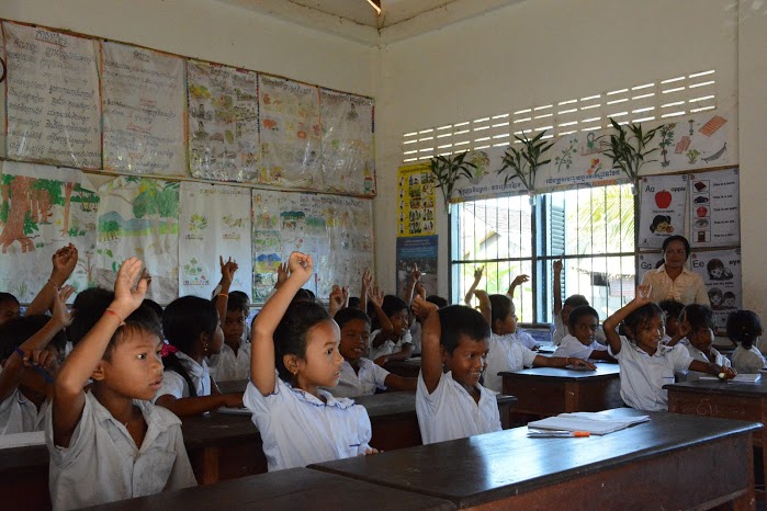 La matriculación neta en la educación primaria, que se sitúa en el 94,3 por ciento, es bastante alta para la región y ha mejorado significativamente en los últimos años. Sin embargo, dada la generalizada pobreza, especialmente en las zonas rurales, muchas familias en Camboya tienen que elegir entre enviar a sus hijos a la escuela o dejarlos en casa ayudando a la familia.