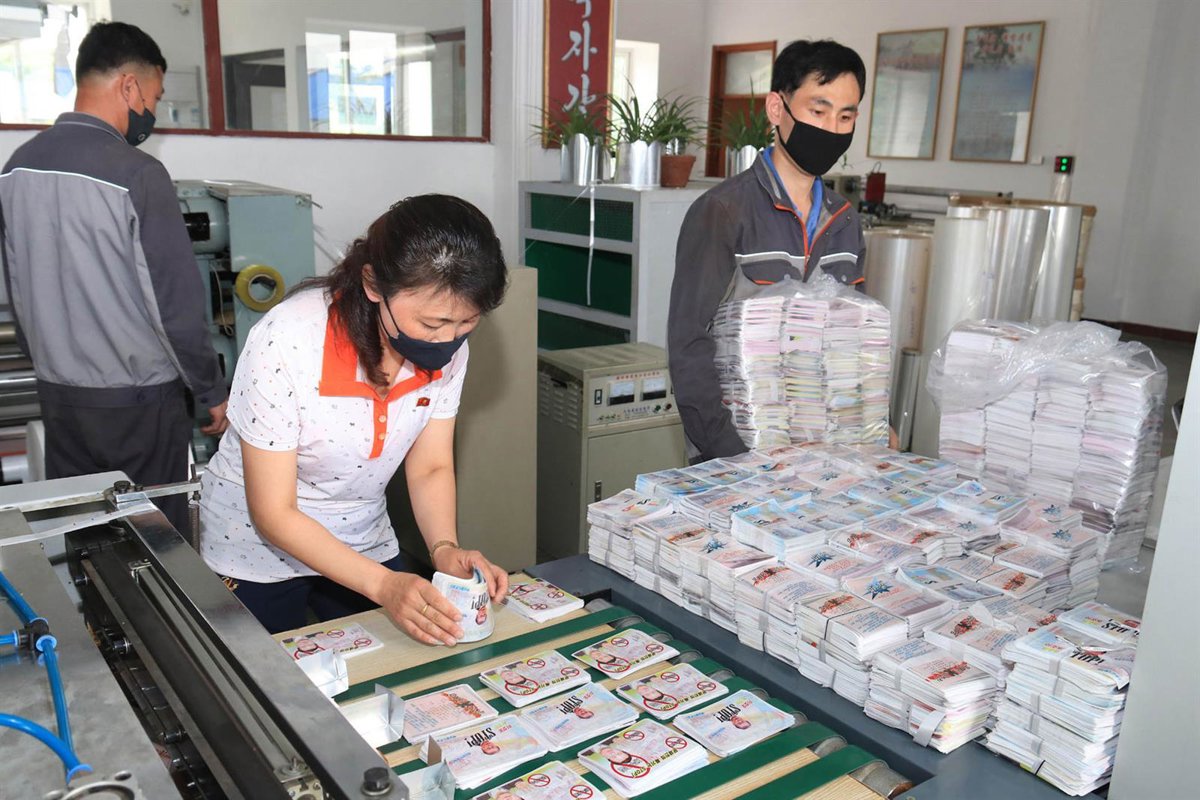 Imagen de la Agencia de Noticias de Corea del Norte en la que tres personas preparan el material propagandístico que han asegurado lanzarán contra el sur como represalia a los últimos actos hostiles cometidos por disidentes norcoreanos. - -/kcna/dpa