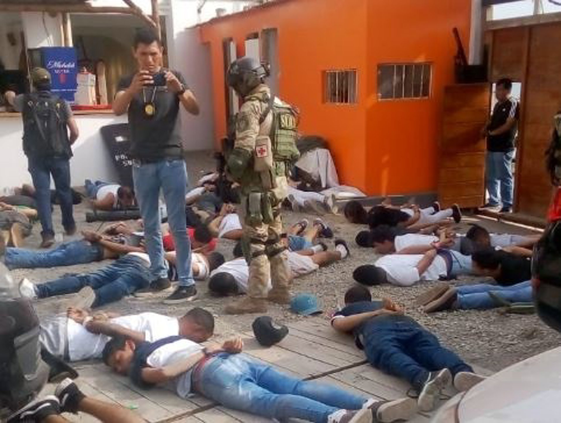 "Se eleva a 124 el número de intervenidos esta tarde por la @PoliciaPeru en el Hotel Rojo de Punta Negra. 80 varones y 44 mujeres, de nacionalidad venezolana, colombiana y peruana. Además de armas, se les incautó laptops, radios, munición y droga. #LosPonemosEnElPiso", ha informado la Policía a través de Twitter.