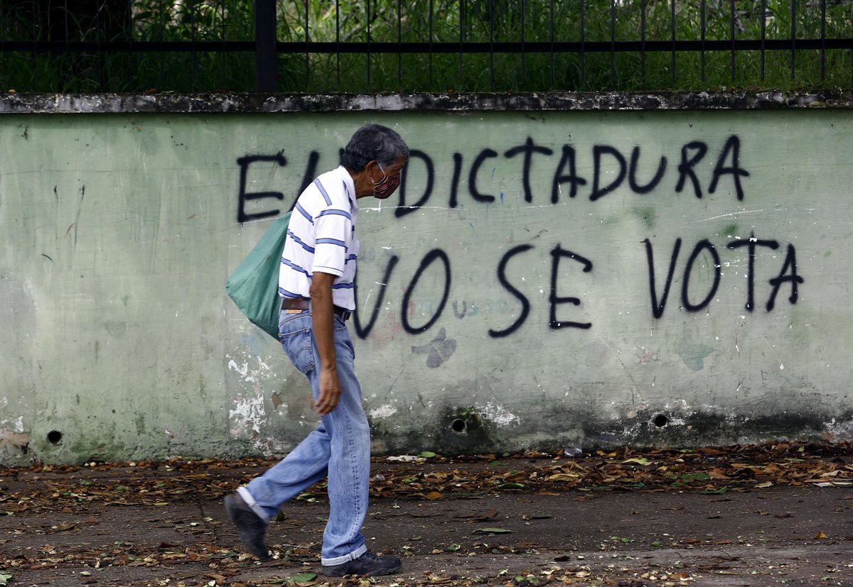 Un hombre pasea junto a un mural contra las elecciones parlamentarias de Venezuela - JUAN CARLOS HERNANDEZ / ZUMA PRESS / CONTACTOPHOTO