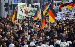 El movimiento político antimusulmán PEGIDA, cuyos partidarios lanzaron botellas y petardos durante una marcha en Colonia el sábado antes de ser dispersados por los antidisturbios, tiene previsto celebrar este lunes por la noche una concentración en Leipzig, en el este del país.