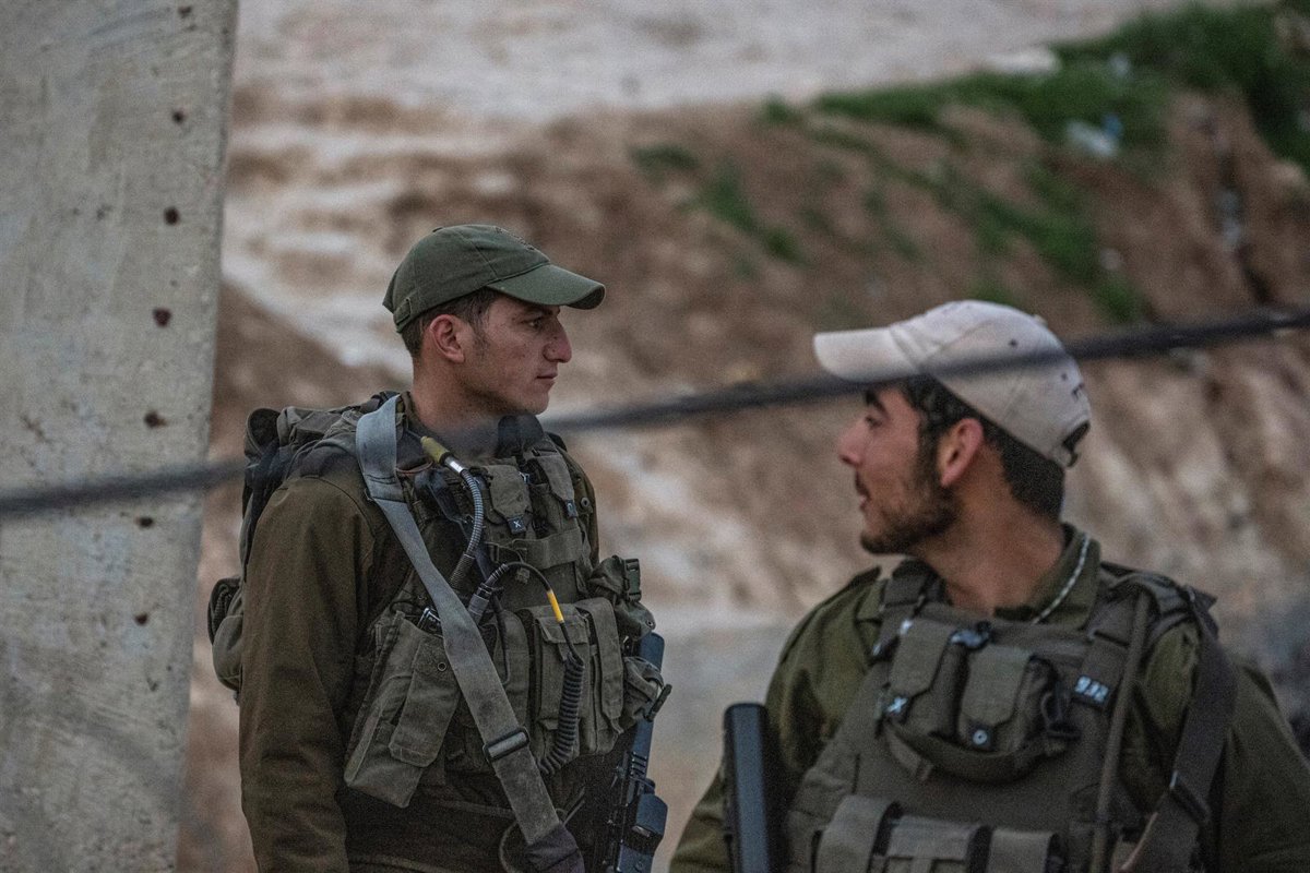 Soldados israelíes armados montan guardia en su puesto después de haber sido desplegados para impedir que los trabajadores palestinos crucen ilegalmente a Israel a través de una abertura en la valla de separación en el puesto de control de Cisjordania - Ilia Yefimovich/dpa