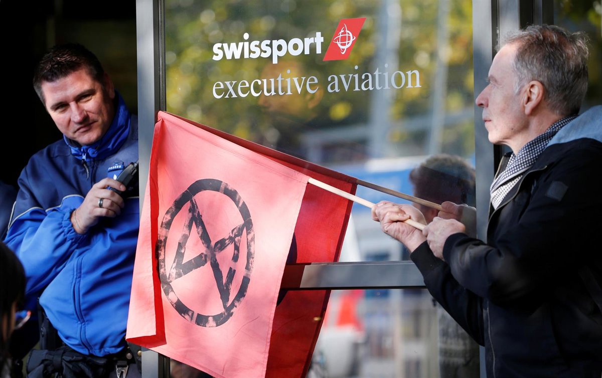 Un centenar de activistas del grupo Extinction Rebellion de acción contra el cambio climático han bloqueado este sábado la terminal de aviones privados del Aeropuerto de Ginebra durante dos horas y media.