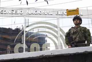 Archivo - Un miembro del Ejército ecuatoriano monta guardia frente al Consejo Nacional Electoral, en Quito, Ecuador - Europa Press/Contacto/Carolina Endara - Archivo