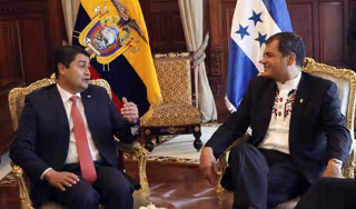 La visita oficial del nuevo presidente de Honduras, Juan Orlando Hernández, a Ecuador marca el restablecimiento de las relaciones diplomáticas entre ambos países, después de que se rompieran en 2009 a raíz del golpe de Estado contra el Gobierno de Manuel Zelaya.