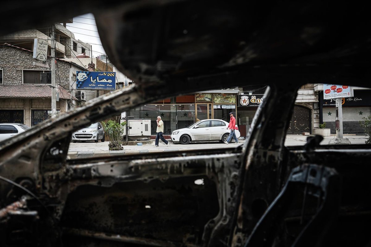 Coches quemados en Ashrafiyat Sahnaya, en la provincia de Dimashq, tras los enfrentamientos entre miembros de la minoría drusa y combatientes progubernamentales sirios - Moawia Atrash/dpa